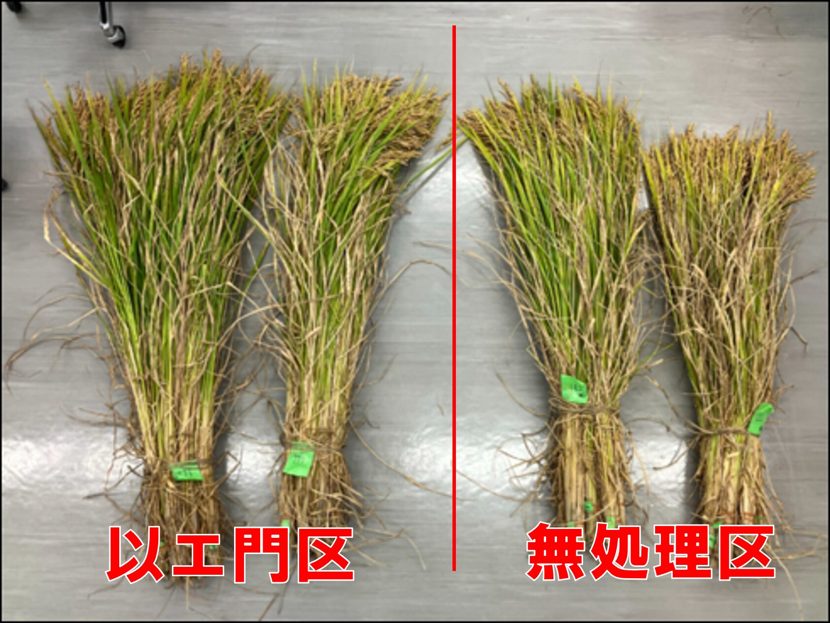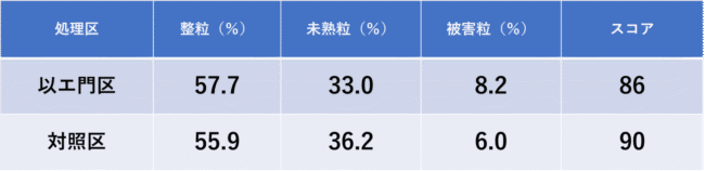 2025年愛知県田原市のコシヒカリ圃場で、以エ門処理区と無処理区で比較。